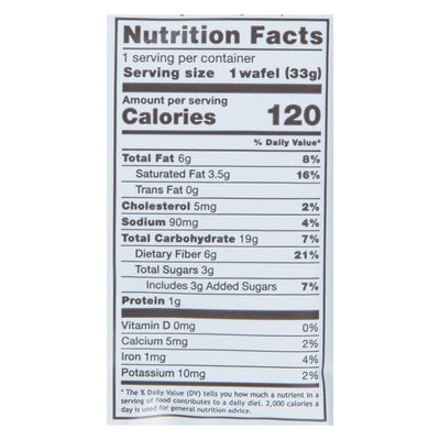PRODUCT DETAILS: European snack. Only 3 g of sugar. 6 g fiber. 120 Calories. A Better Snack: Sugar 3 g Rip van wafels; 14 g Leading cookie; 11 g Leading granola bar. Fiber (Nutrition specs refer to 3 small cookies and 1 granola bar respectively) 6 g Rip van wafels; 1 g Leading cookie; 2 g Leading granola bar. Calories 120 Rip van wafels; 120 Leading cookie; 190 Leading granola bar. Net Carbs (Total Carbs - Fiber) 13 g Rip van wafels; 24 g Leading cookie; 27 g Leading granola bar. Non-GMO Project verified. nongmoproject.org. None of ingredients are genetically modified. The inspiration behind our Rip Van Wafel was to bring Americans a unique, guiltless, and indulgent snack. Our third iteration of the reinvented Dutch stroopwafel has just 3 grams of sugar. That's 5X less sugar than America's most popular cookie with 50% less net carbs and 6X the fiber. Now go ahead and enjoy a better snack! About Rip Van: We believe that as the world changes, people deserve better. Our company exists to improve people's lives by inventing better convenient foods that are uniquely delicious, healthier, and beautifully designed. ripvan.com. (at)ripvansnacks. Facebook. Instagram. Twitter. Made in Canada.