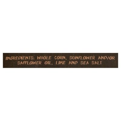 INGREDIENTS: Whole Corn, Sunflower and/or Safflower Oil, Lime and Sea Salt.