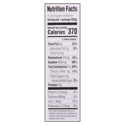 PRODUCT DETAILS: Dark meat chicken and caramelized onions with basmati rice. Certified gluten free. Gluten free. Certified Halal by IFANCA ifanca. org.) World cuisine. Chicken raised with no antibiotics ever. Journey to better. Explore the dish that elevates simple rice into a complex masterpiece of Indian cuisine. Did you know that. The birthplace of biryani wasn't in India at all. Biryani is a mixture of the ancient Persian word Birini meaning rice and Birian meaning fried before cooking. Some tales even credit Mumtaz Mahal, the queen who inspired the Taj Mahal, with its introduction. Perfected over generations, ours is hand-crafted with an epicurean blend of enticing spices, aromas and flavors. At Saffron Road, we are on a mission to inspire people and to connect cultures through a shared love of and passion for world cuisines. Each of our products is rooted in tradition - we only use fresh, wholesome ingredients and time-honored recipes and traditional cooking methods - delivering delicious dishes and snacks from around the world directly to your plate. Saffron Road. Journey to better. Chicken raised with care (Our family farmed chickens are fed a 100% vegetarian diet, mindfully handled with proper shelter and resting areas promoting healthy behavior, and never, ever given antibiotics). Inspected for wholesomeness by U.S. Department of Agriculture. www.saffronroad.com. (hashtag)SaffronRoad. Facebook. Twitter. Instagram. Pinterest. (at)SaffronRoadFood. Please reference information in left flap when contacting us. Certified B Corporation (B Corps are businesses that meet high standards of social and environmental impact. Certified B Corporation by bcorporation.net) Recyclable cardboard and inner tray.