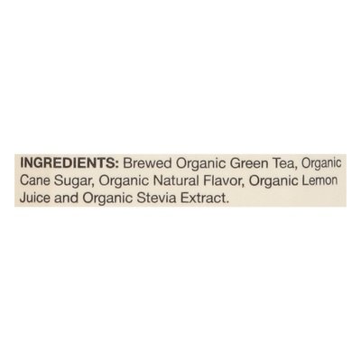 INGREDIENTS: Brewed Organic Green Tea, Organic Cane Sugar, Organic Natural Flavor, Organic Lemon Juice and Organic Stevia Extract.