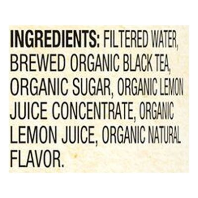 INGREDIENTS: Filtered Water, Brewed Organic Black Tea, Organic Sugar, Organic Lemon Juice Concentrate, Organic Lemon Juice, Organic Natural Flavor.