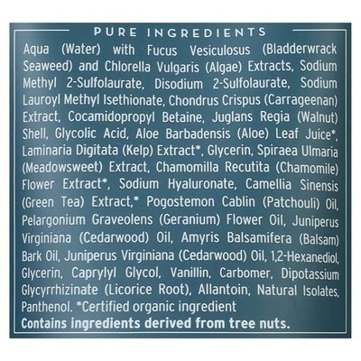 DESCRIPTION: Sleep Collection Body scrub with glycolic acid & aloe. Gluten, sulfate & paraben free. Vegan. For a more restful night. Sleep foaming. Nutrient-rich seaweed. Soothing chamomile. Finely ground walnut shells. 65 vitamins & minerals. Bladderwrack seaweed. Ocean-inspired body care. Scrub away the day and prepare for a better night's sleep while cleansing and restoring your skin. Nutrient-rich seaweed nourishes, exfoliating glycolic acid purifies and brightens, and soothing aloe moisturizes for softer, glowing skin. seaweedbathco.com. Cruelty free. Hand -harvested USA. Maine seaweed. < Pure < Aqua (Water) with Fucus Vesiculosus (Bladderwrack Seaweed) and Chlorella Vulgaris (Algae) Extracts, Sodium Methyl 2-Sulfolaurate, Disodium 2-Sulfolaurate, Sodium Lauroyl Methyl Isethionate, Chondrus Crispus (Carrageenan) Extract, Cocamidopropyl Betaine, Juglans Regia (Walnut) Shell, Glycolic Acid, Aloe Barbadensis (Aloe) Leaf Juice (Certified Organic Ingredient), Laminaria Digitata (Kelp) Extract (Certified Organic Ingredient), Glycerin, Spiraea Ulmaria (Meadowsweet) Extract, Chamomilla Recutita (Chamomile) Flower Extract (Certified Organic Ingredient), Sodium Hyaluronate, Camellia Sinensis (Green Tea) Extract (Certified Organic Ingredient), Pogostemon Cablin (Patchouli) Oil, Pelargonium Graveolens (Geranium) Flower Oil, Juniperus Virginiana (Cedarwood) Oil, Amyris Balsamifera (Balsam) Bark Oil, Juniperus Virginiana (Cedarwood) Oil, 1.2-Hexanediol, Glycerin, Caprylyl Glycol, Vanillin, Carbomer, Dipotassium Glycyrrhizinate (Licorice Root), Allantoin, Natural Isolates, Panthenol.