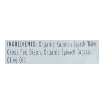 INGREDIENTS: Organic Kabocha Squash, Water, Grass Fed Bison, Organic Spinach, Organic Olive Oil.