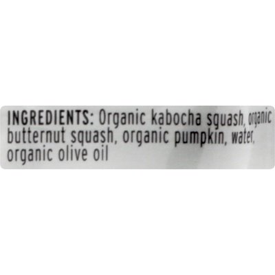 INGREDIENTS: Organic Kabocha Squash, Organic Butternut Squash, Organic Pumpkin Water, Organic Olive Oil.