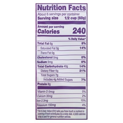 PRODUCT DETAILS: Lightly sweetened with honey. 8 g plant-based protein. 21% daily value fiber. Gluten free cereal. Certified gluten free. 100% Whole Grain: 42 g or more per serving. 100% of the grain is whole grain. wholegrainscouncil.org. Dairy free. Non-GMO Project verified. nongmoproject.org. Modern muesli mixes that taste delicious. Recipe by Hannah. We started Seven Sundays with simple goal: to create a breakfast that was equally nutritious and delicious so that you could savor little Sunday Morning every day of the week. We first discovered muesli (myoo- slee Swiss-German for mix ) while trekking in New Zealand on our honeymoon and have been crafting our own modern muesli mixes since our first farmers market in 2011. Our popular Wild & Free Mix was inspired by our love for foraging wild blueberries on the North Shore of Lake Superior. The result is a vibrant blend of chewy fruits, crunchy chia and buckwheat with a hint of lemon. - Hannah Braly. sevensundays.com. Certified B Corporation. Seven Sundays is a proud B Corporation. We meet the highest standards for environmental and social impact. Learn more at sevensundays.com.