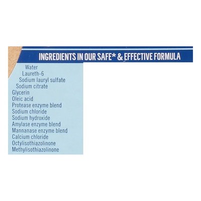 INGREDIENTS: Ingredients in Our Safe (Safe When Used as Directed) & Effective Formula: Water, Laureth-6, Sodium Lauryl Sulfate, Sodium Citrate, Glycerin, Oleic Aci, Protease Enzyme Blend, Sodium Chloride, Sodium Hydroxide, Amylase Enzyme Blend, Mannanase Enzyme Blend, Calcium Chloride, Octylisothiazolinone, Methylisothiazolinone.