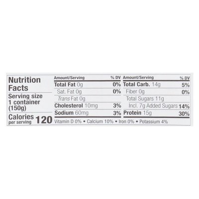 PRODUCT DETAILS: No added natural or artificial flavors. 15 g protein; 11 g sugar. Certified gluten free. gfco.org. Nonfat. 0% milkfat. No artificial sweeteners. No preservatives. Simple ingredient skyr. All natural. No stevia. No added colors. No rBST (No significant difference has been shown between milk derived from rBST treated and non-rBST treated cows). Grade A. Like us! (we certainly like you) Facebook. Twitter. Instagram. Remove Label to: Read out story. Kindly recycle.