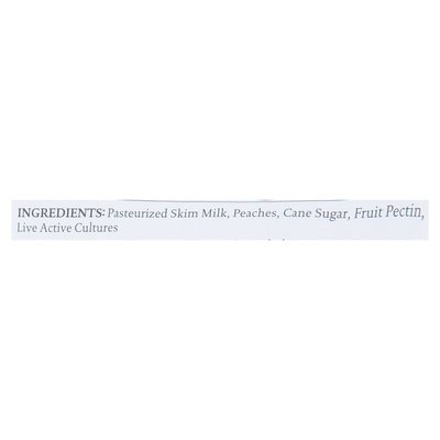 INGREDIENTS: Cultured Pasteurized Skim Milk, Peaches, Cane Sugar, Fruit Pectin. Live Active Cultures: S. Thermophilus, L, Blugaricus, Bifidobacterium, L. Acidophilus, L, Paracasei.