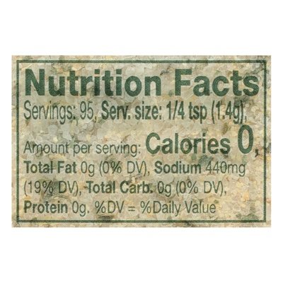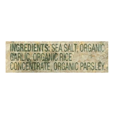 INGREDIENTS: Sea Salt, Organic Garlic, Organic Rice Concentrate, Organic Parsley.