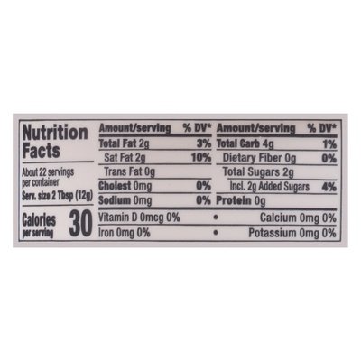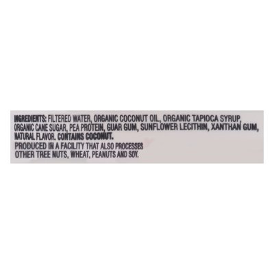 INGREDIENTS: Filtered Water, Organic Coconut Oil, Organic Tapioca Syrup, Organic Cane Sugar, Pea Protein, Guar Gum, Sunflower Lecithin, Xanthan Gum, Natural Flavor.