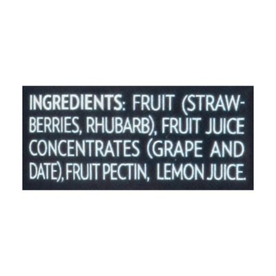 DESCRIPTION: Sweetened only with vineyard ripened grape and fruit juices. No artificial flavors. Gluten free. No artificial preservatives. Non GMO Project verified. nongmoproject.org. France. New. 100% from fruit & rhubarb. Traditional French Recipe: Gently cooked to preserve the fruit's natural flavor. 100% from fruit with rhubarb. No cane sugars. No corn syrups. No artificial colors. www.stdalfour.com. Product of France. < Fruit (Strawberries, Rhubarb), Fruit Juice Concentrates (Grape and Date), Fruit Pectin, Lemon Juice.