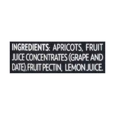DESCRIPTION: Sweetened only with vineyard ripened grape and fruit juice. No artificial flavors. Gluten free. No artificial sweeteners. No artificial preservatives. Non GMO Project verified. nongmoproject.org. France. 100% from fruit. Traditional French recipe. Gently cooked to preserve the fruit's natural flavor. No cane sugars. No corn syrups. No artificial colors. www.stdalfour.com. Product of France. < Apricots, Fruit Juice Concentrates (Grape and Date), Fruit Pectin, Lemon Juice.