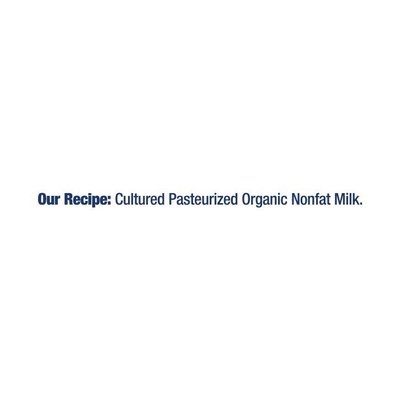 INGREDIENTS: Our Recipe: Cultured Pasteurized Organic Nonfat Milk. 5 Live Active Cultures: S. Thermophilus, L. Bulgaricus, L. Acidophilus, Bifidus and L. Paracasei.