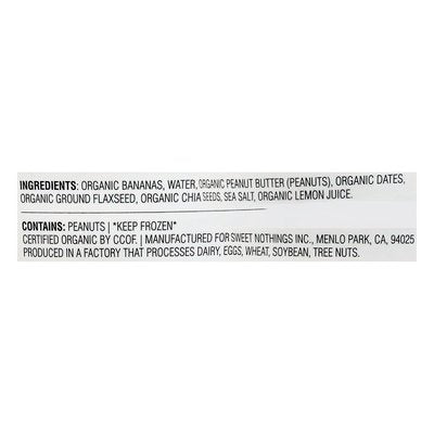 PRODUCT DETAILS: Plant-based frozen spoonable smoothie. USDA Organic. Certified organic by CCOF. No gluten. No added sugar. No dairy. Non-GMO. Handcrafted frozen goodness. Made from fruits, nuts & seeds. All day snack. No animals products. No gums, no stabilizers. Peanuts, bananas, chia, flax, dates. eatsweetnothings.com. (at)eatsweetnothings.