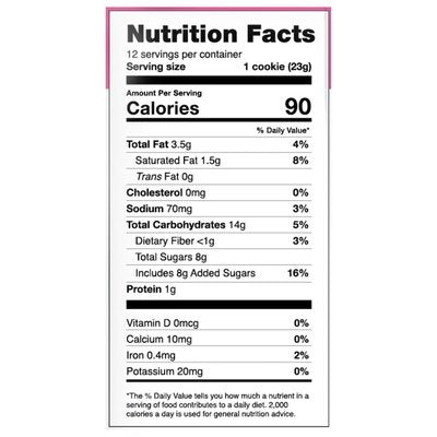 INGREDIENTS: Flour Blend (Oat, Tapioca, Potato Starch), Cane Sugar, Palm Oil (Sustainably Sourced, RSPO Certified), Filtered Water, Molasses, Spices (Ginger, Cinnamon, Cloves), Natural Vanilla Flavor, Sea Salt, Baking Soda.