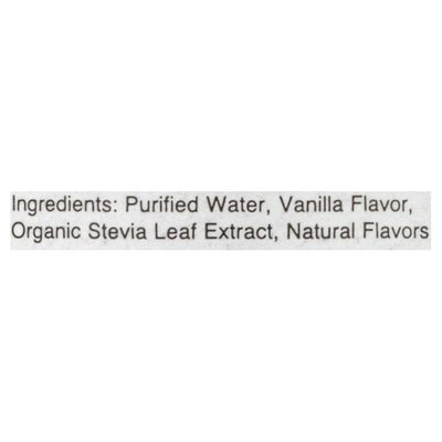 INGREDIENTS: Purified Water, Vanilla Flavor, Organic Stevia Leaf Extract, Natural Flavors.