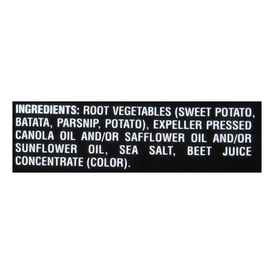 INGREDIENTS: Root Vegetables (Sweet Potato, Batata, Parsnip, Potato), Expeller Pressed Canola Oil and/or Safflower Oil and/or Sunflower Oil, Sea Salt, Beet Juice Concentrate (Color).