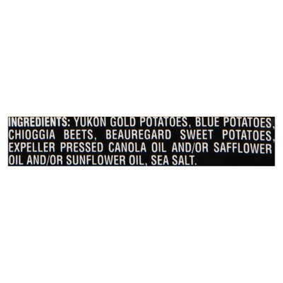 INGREDIENTS: Yukon Gold Potatoes, Blue Potatoes, Chioggia Beets, Beauregard Sweet Potatoes, Expeller Pressed Canola Oil and/or Safflower Oil and/or Sunflower Oil, Sea Salt.