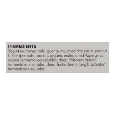 INGREDIENTS: Yogurt (Skimmed Milk, Guar Gum), Dried Rice Syrup, Peanut Butter (Peanuts), Bacon, Organic Inulin, Dried Aspergillus Oryzae Fermentation Solubles, Dried Rhizopus Oryzae Fermentation Solubles, Dried Trichoderma Longibrachiatum Fermentation Solubles.