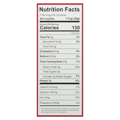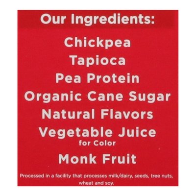 DESCRIPTION: Three Wishes: 8g protein, 3g sugar, grain free. Vs. Leading fruity flavored cereal (based on 35g serving size): 2g protein, 11g sugar, grain based. Gluten free. Certified gluten free. gfco.org. Peanut free. Vegan. No wheat. No dairy. No soy. More protein. 4x more protein than the leading fruity flavored cereal (our cereal contains 8g protein per 35g. The leading fruity flavored cereal contains 2g protein per 35g). Less sugar. 70% less sugar than the leading fruity flavored cereal (our cereal contains 3g sugar per 35g. The leading fruity flavored cereal contains 11g sugar per 35g). No rice. No oats. No corn. Non-GMO Project verified. nongmoproject.org. Wish, granted. They say good things come in threes. As luck would have it so did we - and then we had Jonah and things got even sweeter. Our family wished for a cereal that everyone in the house could love. Imagine a tasty cereal that's a good source of protein and is made with wholesome ingredients. Until now, most cereals have been made from grains. We had a different vision - one that uses nutrient-rich, plant based ingredients. Although it took a little more than just wishing, the cereal of our dreams is here. Margaret. Ton. Elles and Jount Wishing end The Wishes. Women owned. threewishescereal.com. Scan to have your wish granted! threewishescereal.com Instagram: (at)threewishes. Your curiosity has been rewarded! No one ever comes down here, so since you made it to the bottom of the box, we'll let you in on a little secret. You know how we're called Three Wishes because our last name is Wishingrad and we're a family of three...well, we had another kid. His name is Jonah, he's even cuter than our cereal box, and he was born the same day Fruity was born. No joke, Margaret was on her way to the hospital when she got a call from our factory (yes, of course she picked it up) and Fruity went into production the very same day. How's that for granting wishes? Still curious? Head to bottomofbox.com to hear more of our secrets. < Our < Chickpea, Tapioca, Pea Protein, Organic Cane Sugar, Natural Flavors, Vegetable Juice for Color, Monk Fruit.