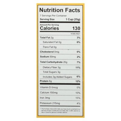 PRODUCT DETAILS: 8 g protein per serving. 3 g sugar per serving. Three Wishes: 8 g protein; 3 g sugar; grain free vs Leading Honey Flavored Cereal (Based on 35 g serving size): 3 g protein; 11 g sugar; grain based. Certified gluten free. gfco.org. Peanut free. Vegan. More Protein: 2.5x more protein than the leading honey flavored cereal (Our cereal contains 8g protein per 35g. The leading honey flavored cereal contains 3g protein per 35g). Less Sugar: 70% less sugar than the leading honey flavored cereal (Our cereal contains 3g sugar per 35g the leading honey flavored cereal contains 11g sugar per 35g). No corn. No oats. No wheat. No dairy. No soy. Non-GMO Project verified. nongmoproject.org. Wish, granted. They say good things come in threes - as luck would have it so did we - and then we had Jonah and things got even sweeter. Our family wished for a cereal that everyone in the house could love. Imagine a tasty cereal that's a good source of protein and is made with wholesome ingredients. Until now, most cereals have been made from grains. We had a different vision - one that uses nutrient rich, plant based ingredients. Although it took a little more than just wishing, the cereal of our dreams is here. No rice. Welcome to the bottom of the box! There's not much going on down here, but why don't we tell you the story of honey. Created at the very start of our cereal journey, Honey probably saw the most taste-tests and flavor tweaks (our one-year-old son, Ellis, was our toughest critic). Dreamed up with our vegan friends in mind, our honeyless honey uses natural flavors and organic cane sugar to mimic the delicious flavor of honey while still being totally vegan! All our cereals are 100% non-GMO verified - they're also 100% Ellis verified, too. threewishescereal.com. Scan to have your wish granted. Instagram: (at)threewishes. Head to bottomofbox.com to learn more about our honeyless honey. The wishes women owned.