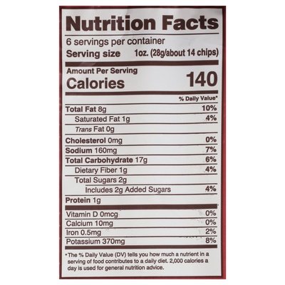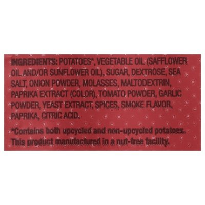 INGREDIENTS: Potatoes (Contains Both Upcycled and Non-Upcycled Potatoes, This Product Manufactured in a Nut-Free Facility), Vegetable Oil (Safflower Oil and/or Sunflower Oil), Sugar, Dextrose, Sea Salt, Onion Powder, Molasses, Maltodextrin, Paprika Extract (Color), Tomato Powder, Garlic Powder, Yeast Extract, Spices, Smoke Flavor, Paprika, Citric Acid.
