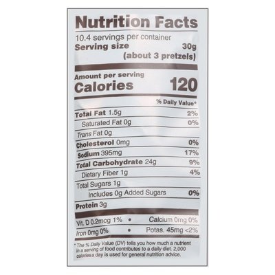 DESCRIPTION: The original split-open pretzel. No: artificial colors or flavors. Per 30 g Serving: 120 calories; 0 g cholesterol; 0 g trans fat; 0 g saturated fat. Kosher & vegan. Lactose free. Tree nut & Peanut free facility. No added sugar or malts. No additives or preservatives. No trans fat. Non-GMO Project verified. Snacks. Estd 1921. Pretzel perfection. Over 100 years. New look. Same classic recipe. More flavor. Fewer ingredients. The Spannuth Family. Smarter baking. 6th generation. Family business. Extra salt splits are a salt-satisfying twist on the original splits pretzel. Just before being placed in the oven a generous extra helping of surface salt is applied. These extra salt splits are the tastiest, crunchiest, and most salt-ifying pretzel you'll ever find. Sunflower oil. Just all-natural quality baked goodness! The Spannuth family has been baking pretzels for six generations dating back to the late 1800's. After years of making great pretzels, in 1921 we established ourselves as Unique Pretzel Bakery, Inc. Through the years we have always had the determination to make our products different and better. The Spannuth Family and our Unique Snack Family are committed to the ongoing mission of providing great snacks that are simple and delicious. - The Spannuth Family. UniqueSnacks.com. Follow us UniqueSnacksUSA. Facebook. Instagram. Twitter. UniqueSnacks.com. Learn more about our Unique history, our products, or place an order. Proudly made in the USA. < Unbleached Wheat Flour, Sunflower Oil, Salt, Soda and Yeast.