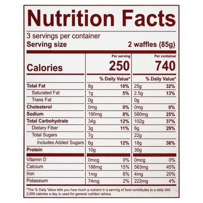 PRODUCT DETAILS: Waffles baked with whole wheat, steel cut oats, millet & brown rice. No artificial flavors, colors or preservatives. Per Serving: 10 g plant-based protein; 9 g whole grains. 0 g trans fat. Dairy & egg free. Cholesterol free. Non GMO Project verified. nongmoproject.org Power grains is now protein. Made with real blueberries. No high fructose corn syrup. Made with whole grains. Plant-based. Dear Friends, we know that you care about the foods you and your family eat. We do too! For nearly 50 years, it's been our mission to bring together simple nourishing deliciously wholesome meets awesome combo at our ingredients in a way that makes our foods irresistible. We first treated folks to our original Redondo Beach restaurant in 1968, and we've never looked back! So rest assured that whenever you've got Van's Foods, you've got Vans a wholesome choice that also tastes awesome! www.vansfood.com. Facebook. Instagram. Have a question or comment? Call us at: 1-800-323-7117. Visit us at: www.vansfood.com and join the Van's community. Delicious meets nutritious with Van's wholesome foods including out snack bars, crackers, and waffles. Visit vansfood.com for more!