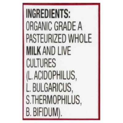 DESCRIPTION: Up to 90 billion CFU per serving. USDA Organic. Certified Organic by the Texas Department of Agriculture. Gluten free. Non GMO Project verified. nongmoproject.org. Whole. Since 1980 White Mountain Foods has been making Bulgarian Yogurt the traditional way, using mil, live cultures, and time. The result is an old-world style, immune and digestive system supporting, staple food. Enjoy as is, with your favorite toppings, or in your favorite recipe. Refreshing tart flavor. Live acidophilus. No added sweeteners. No added thickeners. No artificial hormones. Family owned and manufactured. 24 hours fermentation. Grade A. www.wmfoods.com. Facebook. Instagram. Visit www.wmfoods.com for recipes! Single service only. Please recycle. < Organic Grade A Pasteurized Whole Milk And Live Cultures (L. Acidophilus, L. Bulgaricus, S. Thermophilus, B. Bifidum).