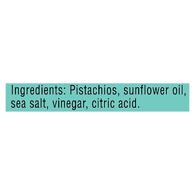 INGREDIENTS: Pistachios, Sunflower Oil, Sea Salt, Vinegar, Citric Acid.