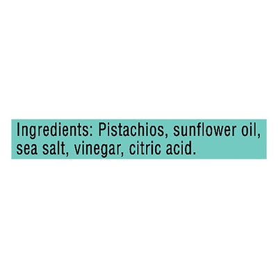 INGREDIENTS: Pistachios, Sunflower Oil, Sea Salt, Vinegar, Citric Acid.