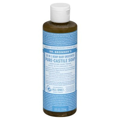 Dr Bronners Castile Soap Pure 18-In-1 Hemp Baby Unscented 8 OZ [UNFI #0329276] T