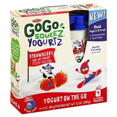 Gogo Squeez Yogurtz Lowfat Strawberry 4-Pack 12/4/3 OZ [UNFI #1897537] [ebt]
