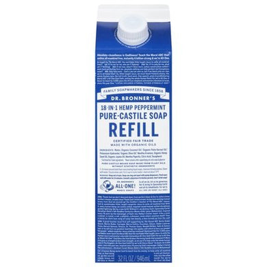 Dr Bronners Soap Pure-Castile 18-in-1 Hemp Peppermint Refill 32 OZ [UNFI #3004413] T