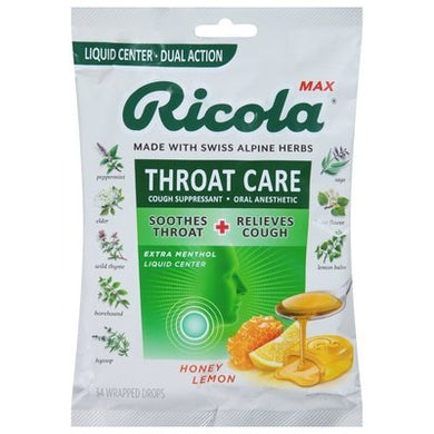 Ricola Throat Care Honey Lemon Wrapped Drops 6/34 CT [UNFI #2870558] [ebt] T
