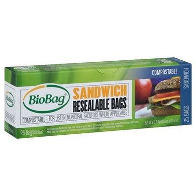 Biobag Resealable Bags Sandwich 12/25 CT [UNFI #1204262] T