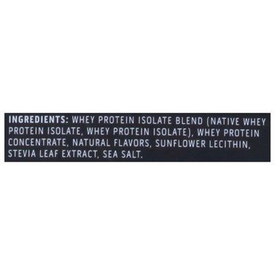 INGREDIENTS: Whey Protein Isolate Blend (Native Whey Protein Isolate, Whey Protein Isolate), Whey Protein Concentrate, Natural Flavors, Sunflower Lecithin, Stevia Leaf Extract, Sea Salt.
