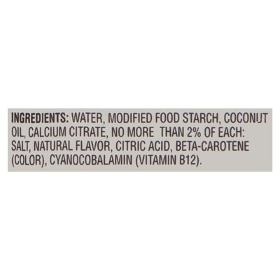 INGREDIENTS: Water, Modified Food Starch, Coconut Oil, Calcium Citrate, No More than 2% of Each: Salt, Natural Flavor, Citric Acid, Beta-Carotene (Color), Cyanocobalamin (Vitamin B12).