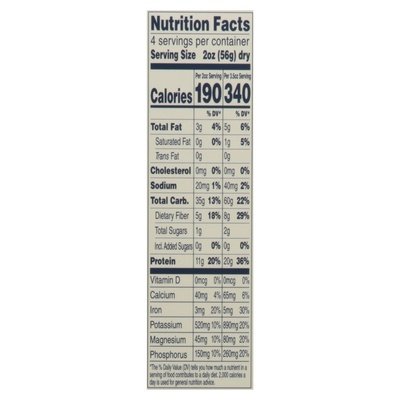 PRODUCT DETAILS: 20 g protein (per 3.5 oz serving). 8 g fiber (per 3.5 oz serving). 20 g protein. Vegan. Certified gluten free. gfco.org. Gluten-free. 50% more protein. 3x fiber. 25% fewer net carbs (Net carbs = total carbs - dietary fiber) compared to the leading average pasta. Non-GMO Project verified. nongmoproject.org. Powered by chickpeas. Why make pasta out of chickpeas? Because we want to eat more pasta! So, we thought, why not use chickpeas to make pasta that's nutrient-dense, protein-packed, good-for-the-planet, and delicious? We can keep going but your water is probably boiling and your sauce is likely a-simmering. Go ahead, finish cooking, we'll see you again soon. Low glycemic index. Pasta nightly. EatBanza.com. how2recycle.info. (at)EatBanza. Look for our pizza, mac, and rice in a store near you! Made at our plant in Riverside, California.