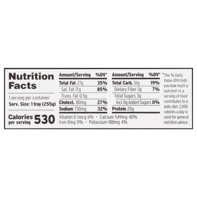 INGREDIENTS: Gluten-Free Penne Pasta (Water, Corn Flour, Rice Flour, Mono and Diglycerides), Milk (Vitamin D3 Added), Flagship Cheese (Pasteurized Milk, Salt, Culture, Enzymes), Just Jack Cheese (Pasteurized Milk, Salt, Culture, Enzymes), Water, Rice Flour, Butter (Cream, Salt), Chipotle Puree (Chipotle Peppers, Water, Tomato Paste, Sugar, Contains 2% or Less Sunflower Seed Oil, Onion, Cornstarch, Vinegar, Salt, Paprika, Garlic, Spices), Salt, Chili Powder (Chili Pepper and Other Spices, Salt, Garlic Powder), Dehydrated Garlic.