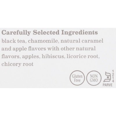 INGREDIENTS: Carefully Selected Ingredients: Black Tea, Chamomile, Natural Caramel and Apple Flavors with Other Natural Flavors, Apples, Hibiscus, Licorice Root, Chicory Root.