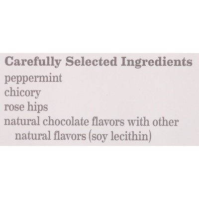 INGREDIENTS: Carefully Selected Ingredients: Peppermint, Chicory, Rose Hips, Natural Chocolate Flavors with Other Natural Flavors (Soy Lecithin), Licorice Root.