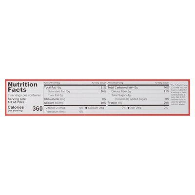 INGREDIENTS: Pizza Crust (Unbleached Flour, Filtered Water, Yeast, Sea Salt, Olive Oil, Organic Brown Sugar), Tomato Sauce (Tomatoes, Basil, Lemon Juice, Apple Cider Vinegar, Salt), Vegan Cheese Alternative (Filtered Water, Coconut Oil, Food Starch - Modified, Sea Salt, Mozzarella Flavor (Vegan Sources), Olive Extract, Beta Carotene, Vitamin B12), Meatless Pepperoni Slices (Vital Wheat Gluten, Filtered Water, Canola Oil, Great Northern Beans, Sundried Tomato, Salt, Apple Cider Vinegar, Sugar, Red Wine Vinegar, Tomato Paste, Garlic Powder, Nutritional Yeast, Lactic Acid, Fennel Seeds, Paprika, Mustard Seeds, Smoked Paprika, Red Pepper Flakes, Onion Powder, Black Pepper), Garlic.