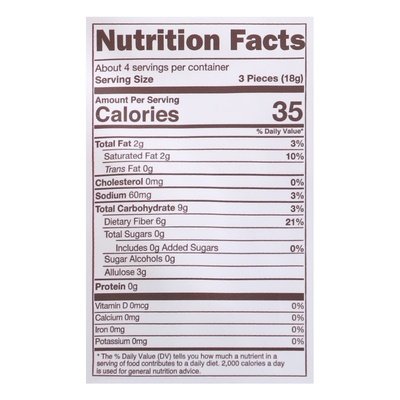 DESCRIPTION: Sugar free. Made without dairy. Certified Organic By Pro-Cert. Vegan. Kosher. Keto-friendly. The original. Yum for everyone now even more people can enjoy Cocomels with our Sugar Free Coconut Milk Caramels. They're so good, you won't even think they're sugar free! So, tear open a bag and share with a friend, because sharing is caring. And we care about giving you the most deliciously sweet and chewy caramel that all can enjoy. Sugar free sublimeness. No sugar alcohols. Cocomels.com. Share your experience at cocomels.com, or tag @jjscocomels on Facebook. Instagram. Made in the USA with domestic and international ingredients < Organic Coconut Milk (Organic Coconut, Water), Soluble Tapioca Fiber, Allulose, Prebiotic Fiber, Sea Salt, Vanilla Extract (Water, Ethyl Alcohol, Vanilla Bean Extractives), Sunflower Lecithin, Monk Fruit.