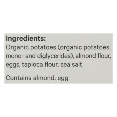 INGREDIENTS: Organic Potato, Almond Flour, Cage-Free Eggs, Tapioca Flour, Sea Salt.