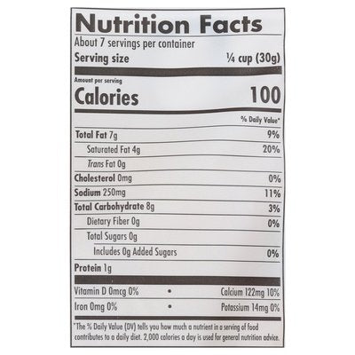 INGREDIENTS: Daiya Oat Cream Blend (Water, Oat Flour, Pea Protein, Cultures, Enzymes), Coconut Oil, Tapioca Starch, Expeller Pressed Safflower Oil, Corn Starch, Less than 2 Percent of: Konjac Flour, Fruit Juice (for Color), Yeast Extract, Salt, Dextrose, Tricalcium Phosphate, Xanthan Gum, Lactic Acid, Natural Flavors.