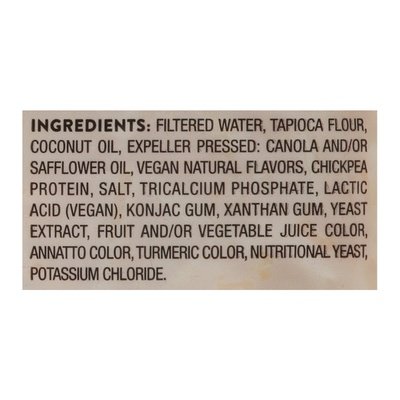 INGREDIENTS: Daiya Oat Cream Blend (Water, Oat Flour, Pea Protein, Cultures, Enzymes), Coconut Oil, Tapioca Starch, Expeller Pressed Safflower Oil, Corn Starch, Less than 2 Percent of: Konjac Flour, Yeast Extract, Fruit and Vegetable Juice (for Color), Annatto (for Color), Salt, Dextrose, Tricalcium Phosphate, Xanthan Gum, Lactic Acid, Natural Flavors.
