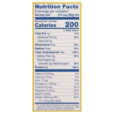 INGREDIENTS: Durum Wheat Semolina, Vitamins (Niacin, Thiamine Mononitrate, Riboflavin, Folic Acid), Iron (Ferrous Lactate).
