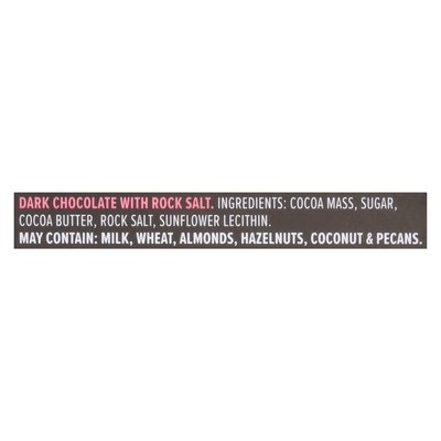 PRODUCT DETAILS: Dark chocolate with rock salt. Vegan. Non-GMO Project verified. nongmoproject.org. Every bar directly improves the lives of farmers. Co-owned by cocoa farmers. 60% Cocoa. Cocoa solids 60% minimum. www.halal-zertifikat.de. divinechocolate.com. Committed to making a difference. Discover more at divinechocolate.com. 100,000 owners, one purpose. Every cocoa bean we grow & every chocolate bar we make directly improves the lives of farmers & their families. Every bar directly improves the lives of farmers. Discover more on the inside. Certified B Corporation. Certified Fair Trade by FLOCert. Fairtrade Cocoa and Sugar: 99%. Sugar may be mixed with non-certified sugar on a mass balance basis. Visit info.fairtrade.net/sourcing. FSC: Mix - Paper. Product of Germany.