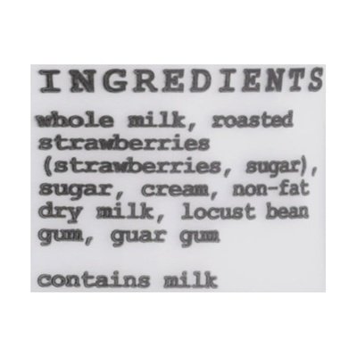 INGREDIENTS: Whole Milk, Roasted Strawberries (Strawberries, Sugar), Sugar, Cream, Non-Fat Dry Milk, Locust Bean Gum, Guar Gum.